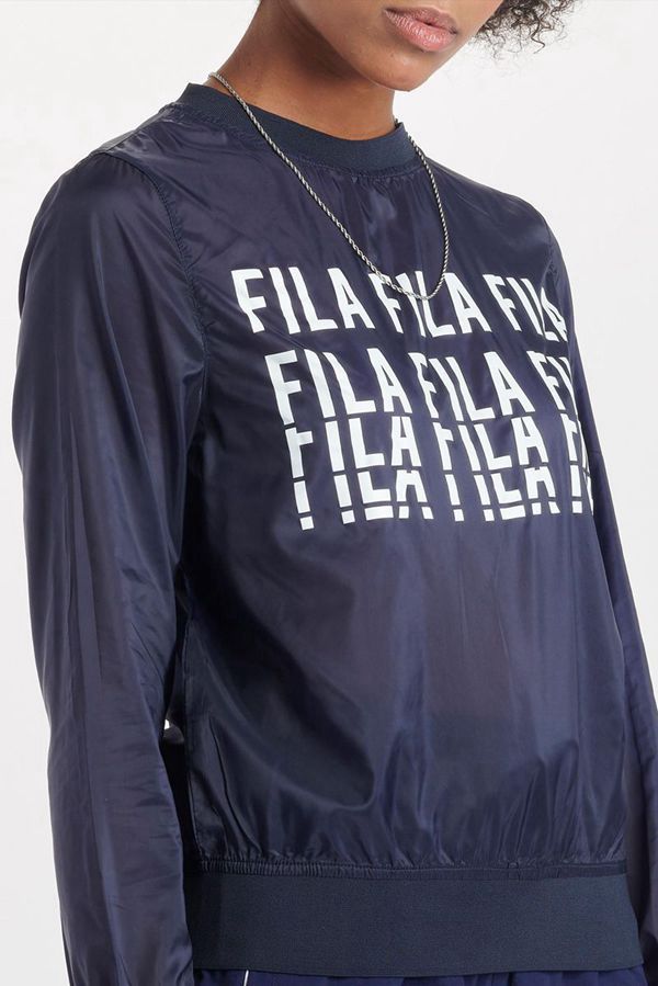 This Sol Sheer Sweatshirt features a unique translucent nylon construction with ribbed cuffs, sleeves and waistband for a custom fit. Our unique FILA graphic print on the chest for branding.