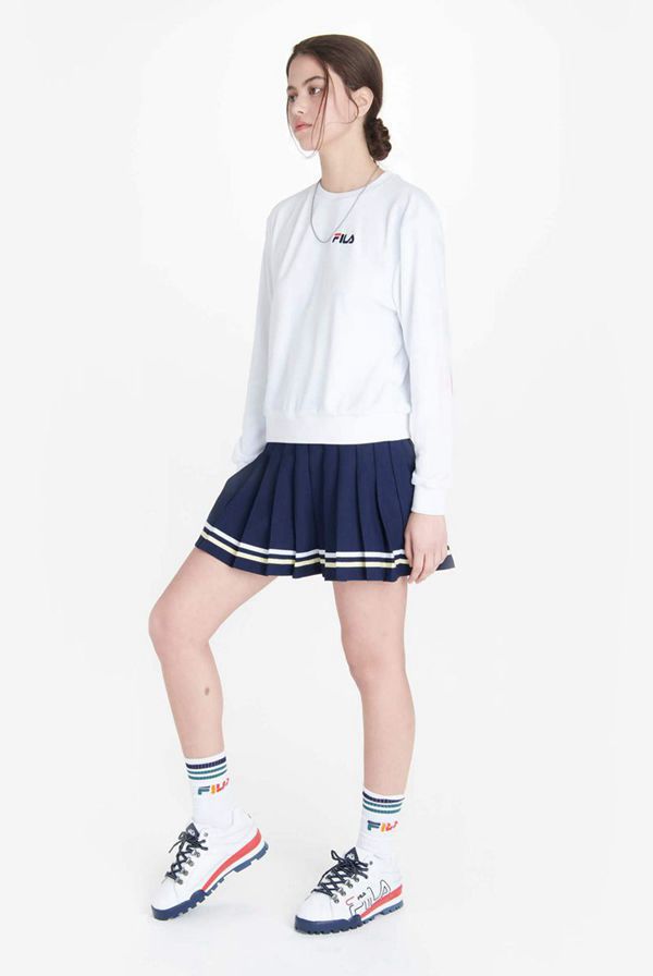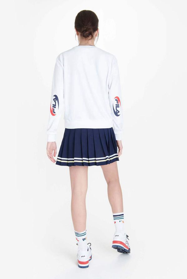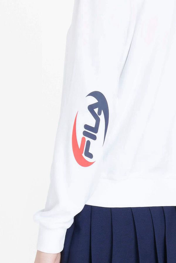 The ultra-soft and cozy long-sleeve Emilia velour crew featuring our unique FILA logo patch undersleeves.