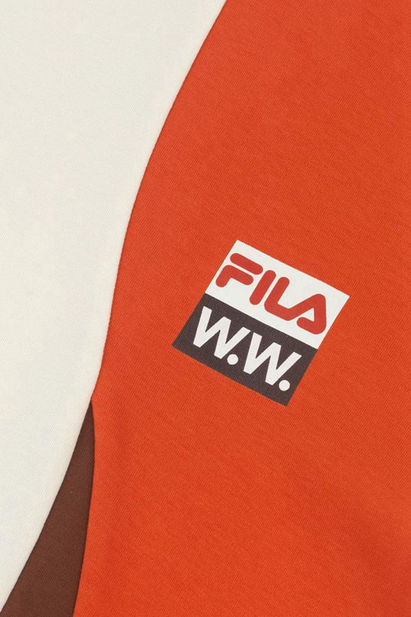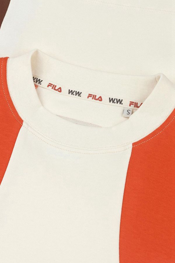 Diving deep into 1970's tennis attire. The Monica Long Sleeve features a colour block design constructed with an interlocking light, stretchy fabric for ultimate comfort. Our FILA and Wood Wood's logo feature on the chest, adding a signature touch to this long sleeve top.