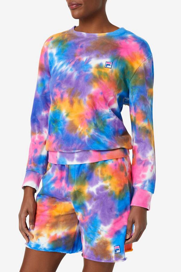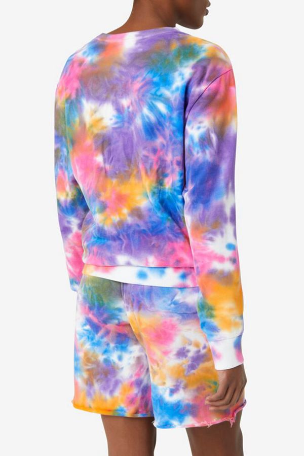 Cozy crewneck sweatshirt in vibrant tie dye design.