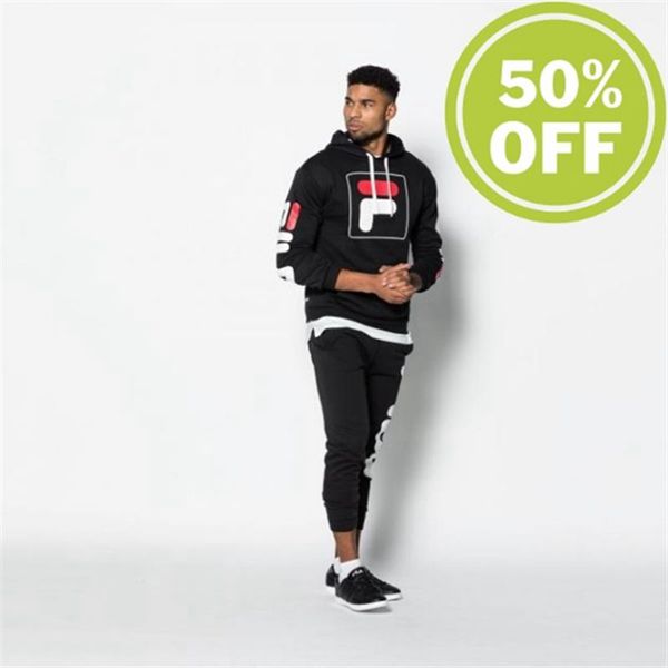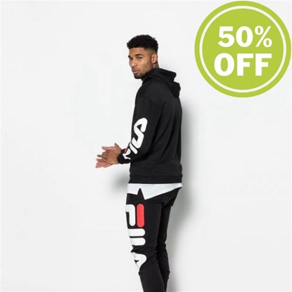 Urban-style hoodie with kangaroo pocket and big FILA logos on front and sleeves. unisex