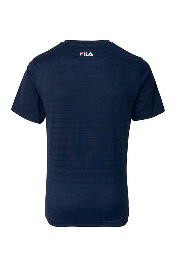 Simultaneously supplying a timeless look with modern function, this crew tennis tee features a textured stripe pique polyester build in a solid body with contrasting striped detailing on the shoulders.