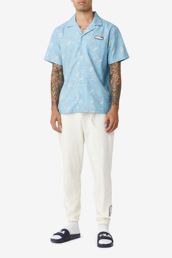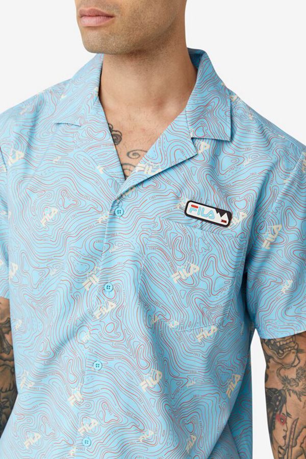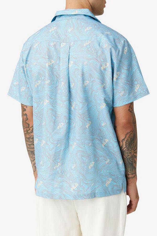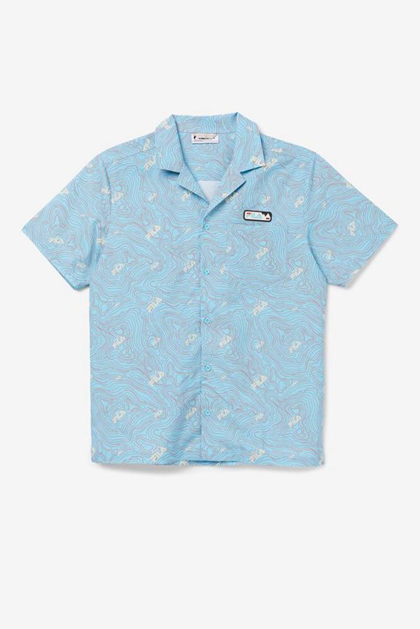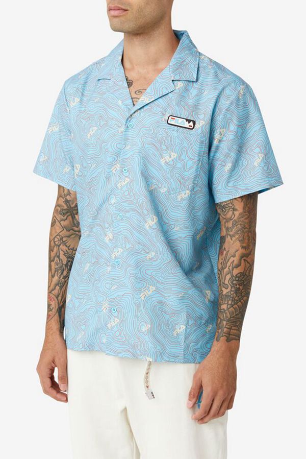 This bold button-up shirt features an all-over graphic inspired by topographical maps with repeating FILA logos.