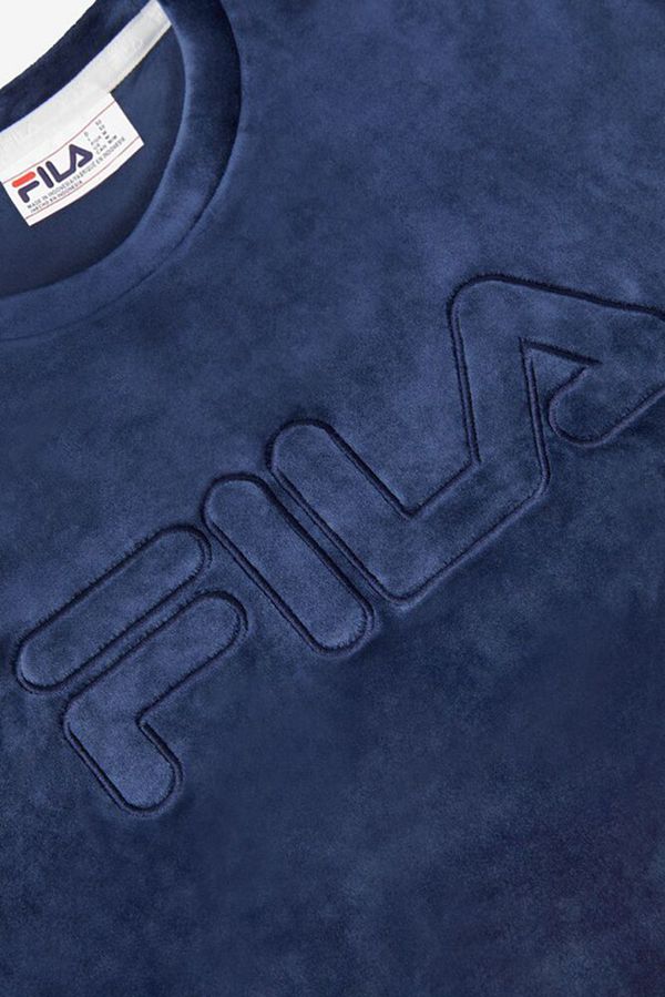 Luxurious style is what you’ll enjoy with this velour crew tee, featuring FILA logo outline embroidered across the chest.