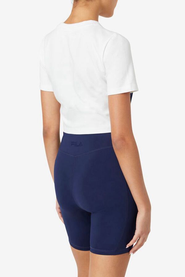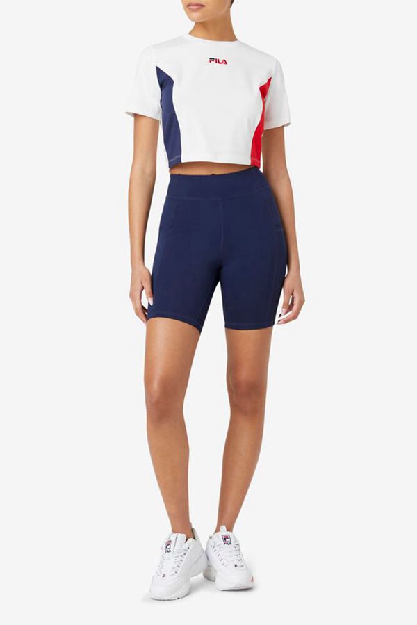 Tops Fila Mulher Azul Marinho/Branco/Vermelhas - Fila Purva Crop Outlet Portugal,SUEJ-50478