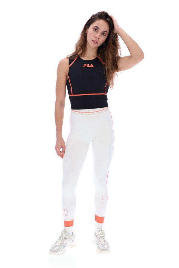The Dara Sports Top features a racer-style neckline, a cropped design with an asymmetrical linear pattern. The top is finished off with a colour-contrasting centralised FILA logo.
