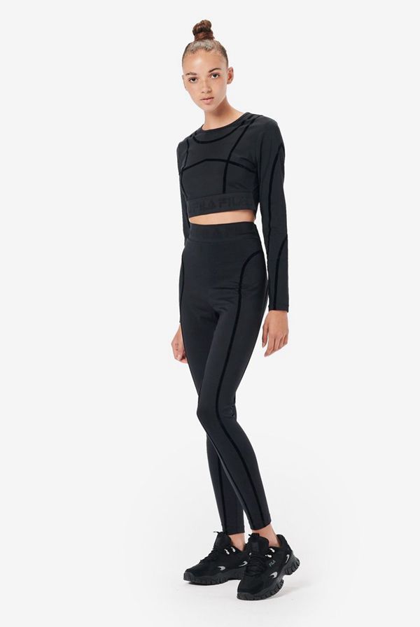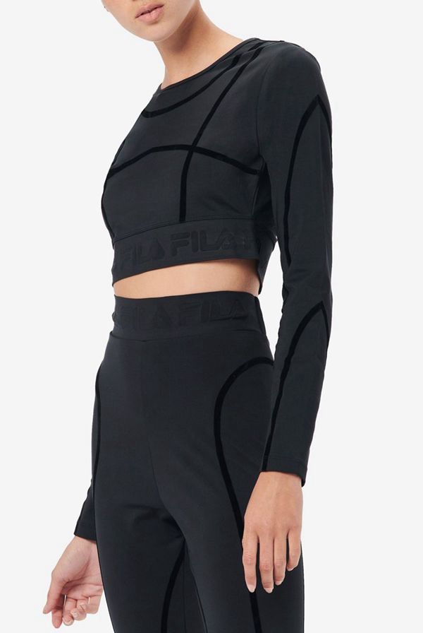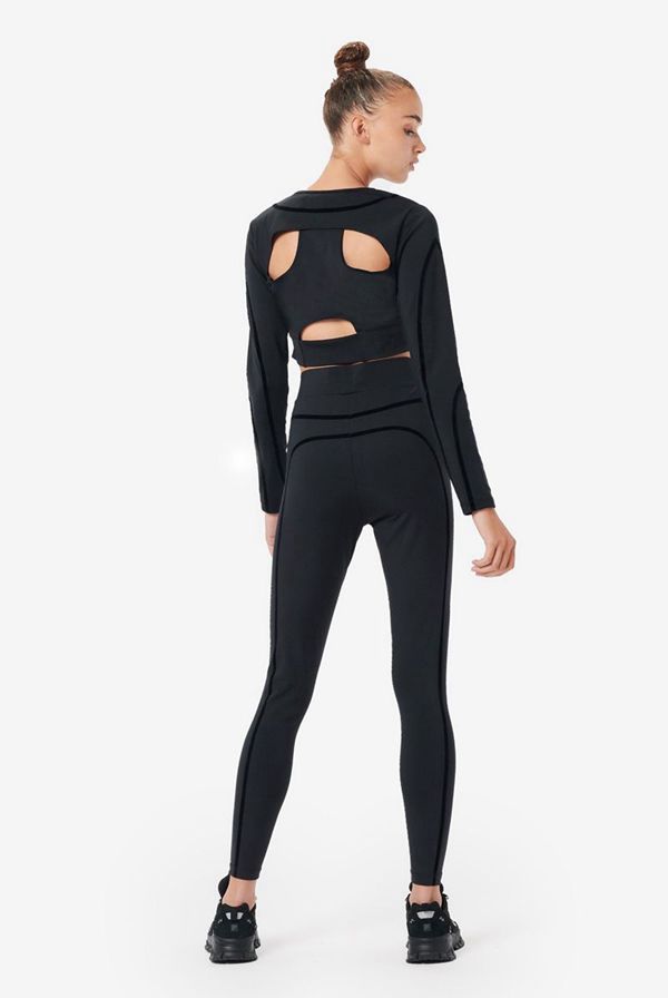 This cutting edge KALYANI Long Sleeve Top is ultra cool with its tight fit, cropped waist and interchanging black stripes. Team with our JUHI Leggings for a bold workout vibe.