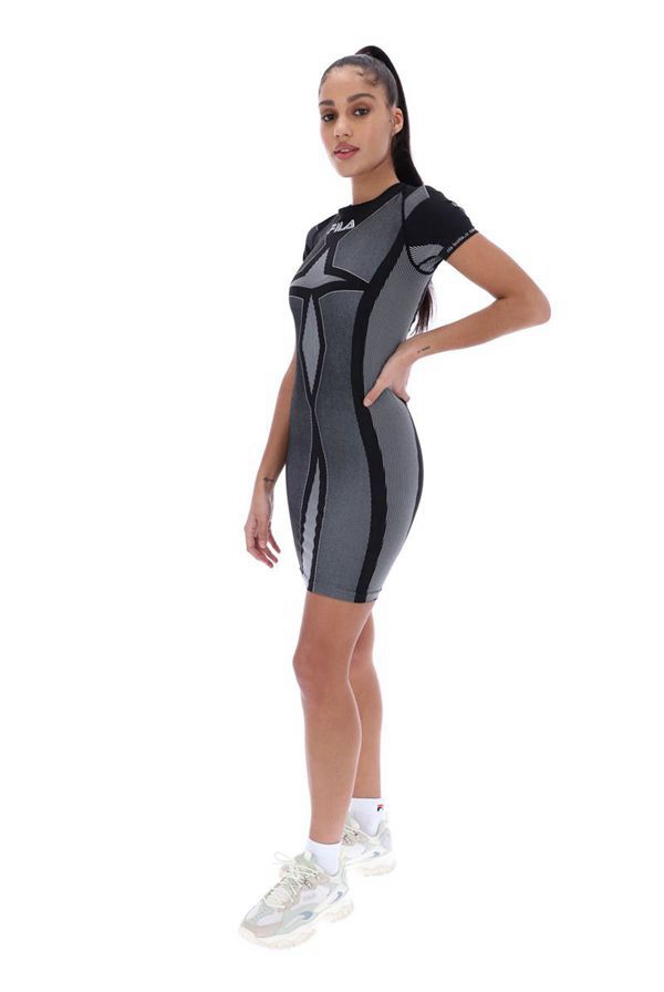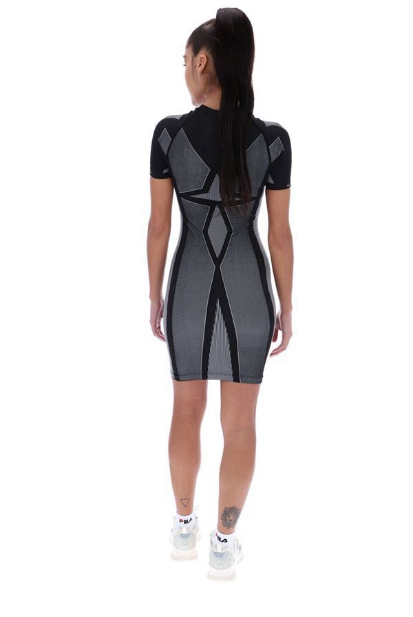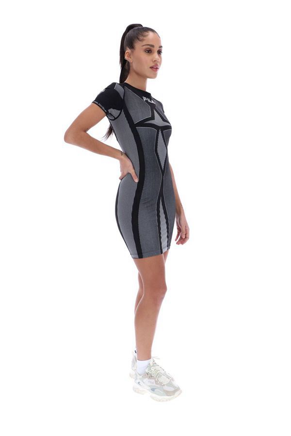 The figure tight round-neck Rayelnn Seamless Bodycon Dress brings a unique look with its symmetrical pattern. This short-sleeved dress is finished with a centralised FILA linear logo.